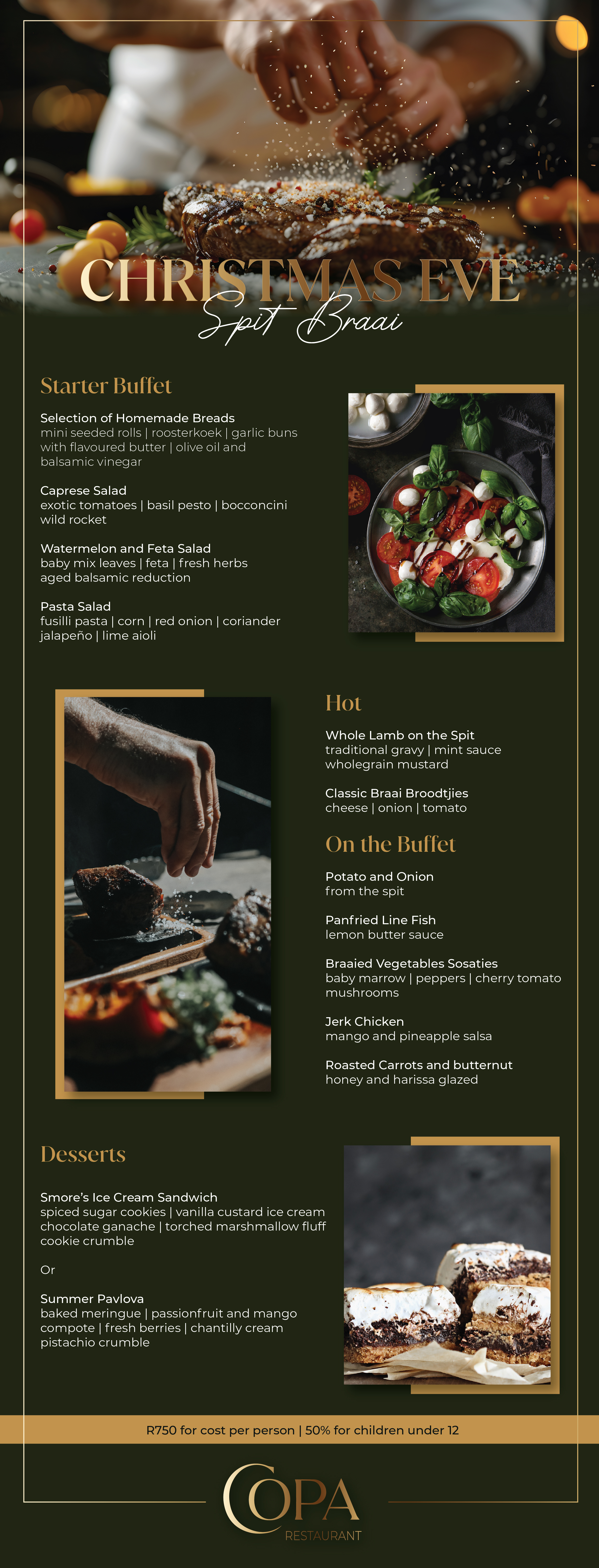 That is what you can expect from our modern in-house restaurant COPA. Here we offer a contemporary menu that has been locally sourced and carefully hand-crafted by our executive Chef Nigel Stemmet. COPA’s dazzling décor and ambient lighting sets the tone for a romantic mood and accentuates the tones of cream and copper.